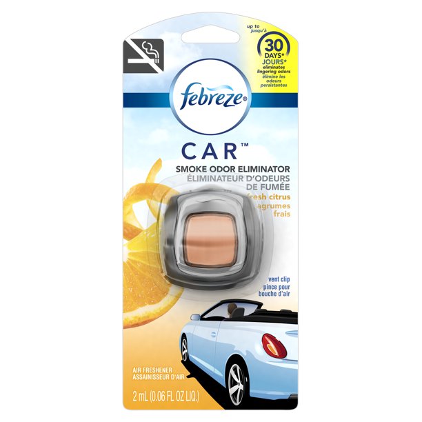 Febreze Car Air Freshener Smoke Odor Eliminator Fresh Citrus 1 Count 0 06 Oz Walmart Com
